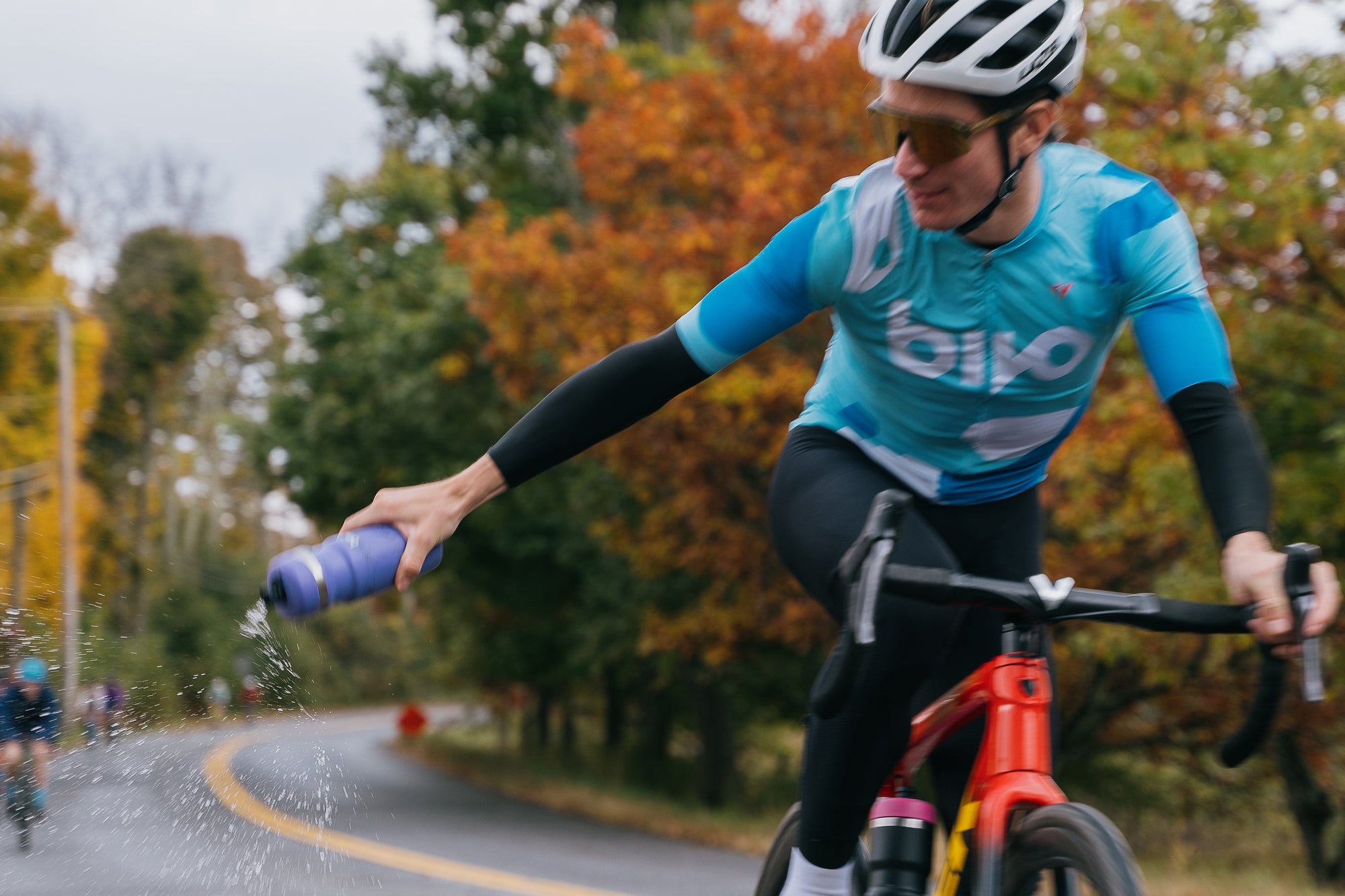 He says cyclists need a solution that does all of the following: wicks the sweat away, dries your base layer, creates a pocket of warm air and blocks the external elements from getting in, all while allowing each layer to breathe.