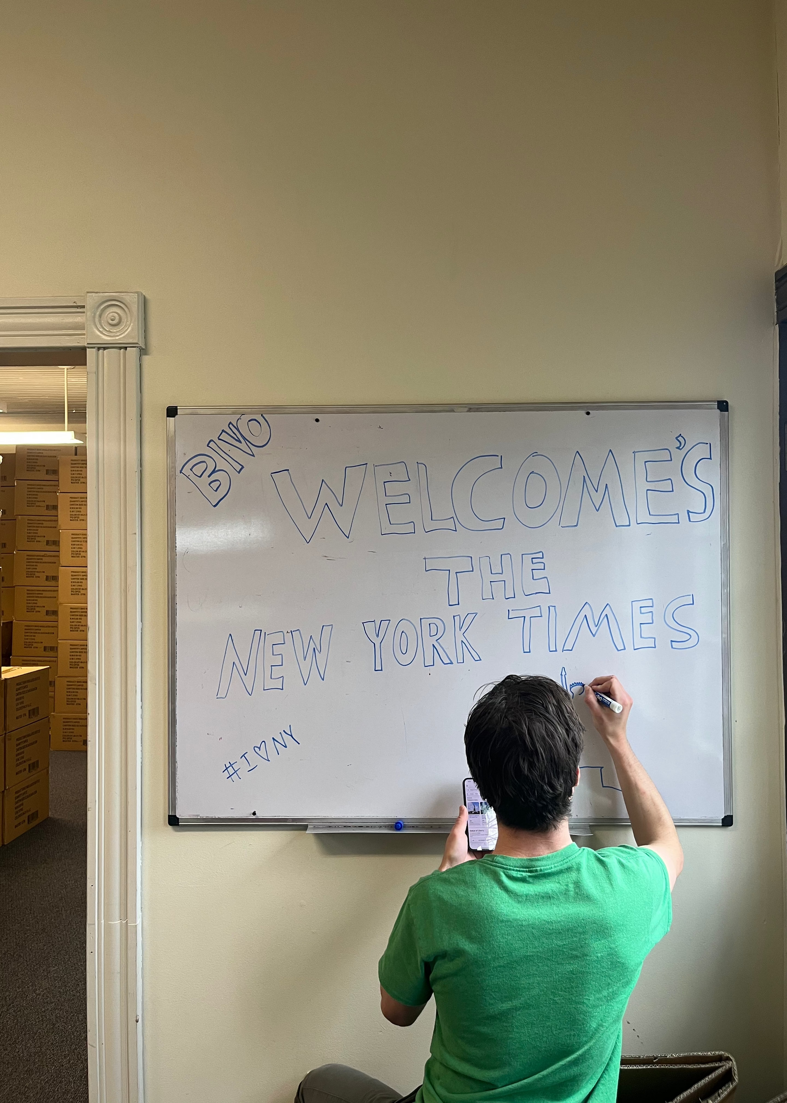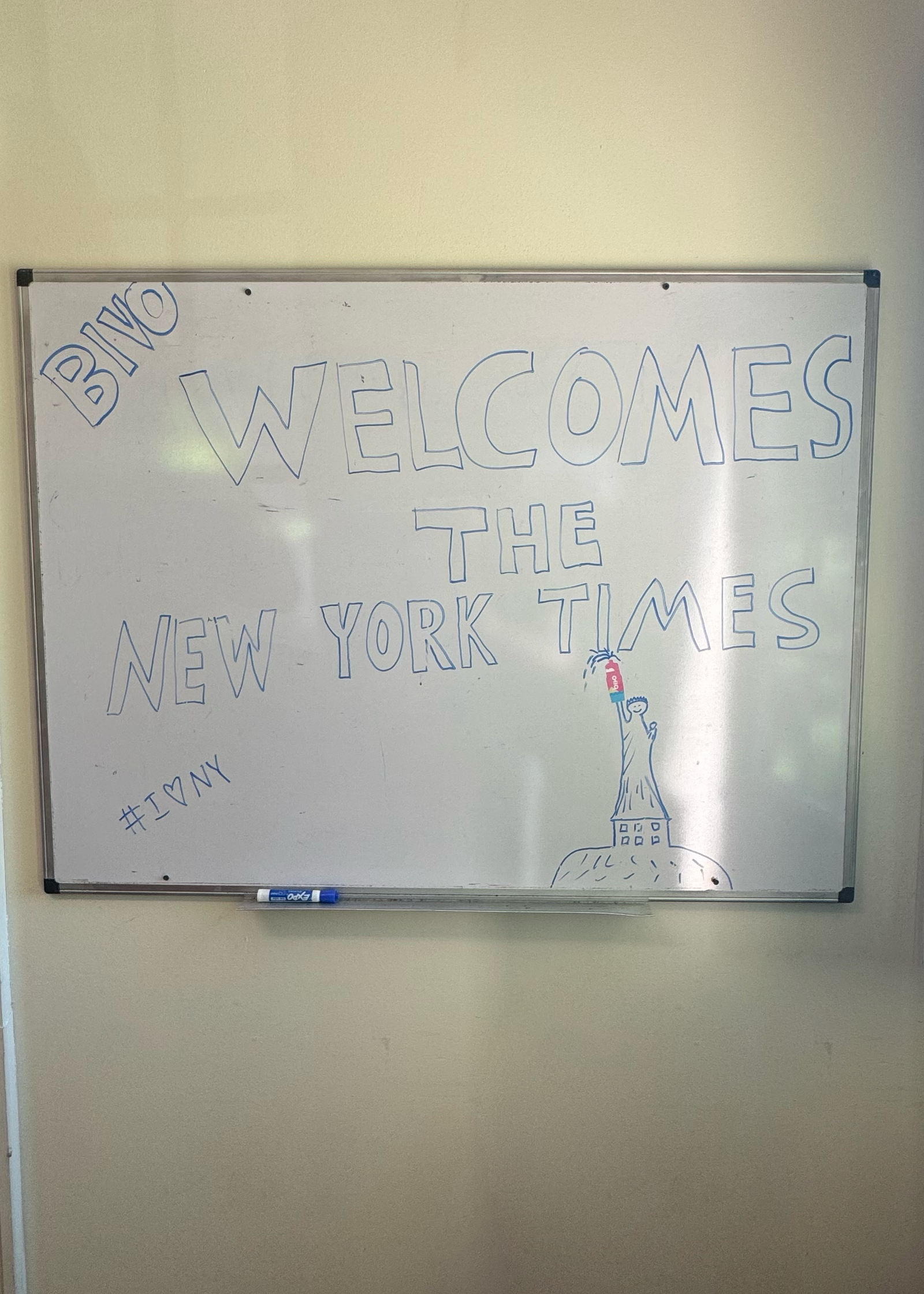 Though it was in the middle of a very tough time, Carina enjoyed welcoming Peter Eavis, a NYT reporter into Bivo’s office to tell the story on how small businesses like Bivo were impacted by tariffs. The team rallied around welcoming Peter for the day, and wrote a little whiteboard message that Carina thought embodied the true welcoming and earnest spirit of the Bivo team!
