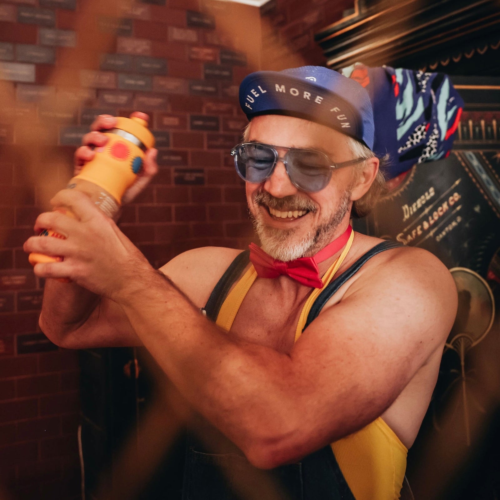 Being a Bivo bartender one night at the Momentum art show over the weekend of Rebecca’s Private Idaho. Mark seriously loves a ludicrous outfit so he was thrilled to dress up and mix up cocktails in Bivos for all the attendees of the art show.