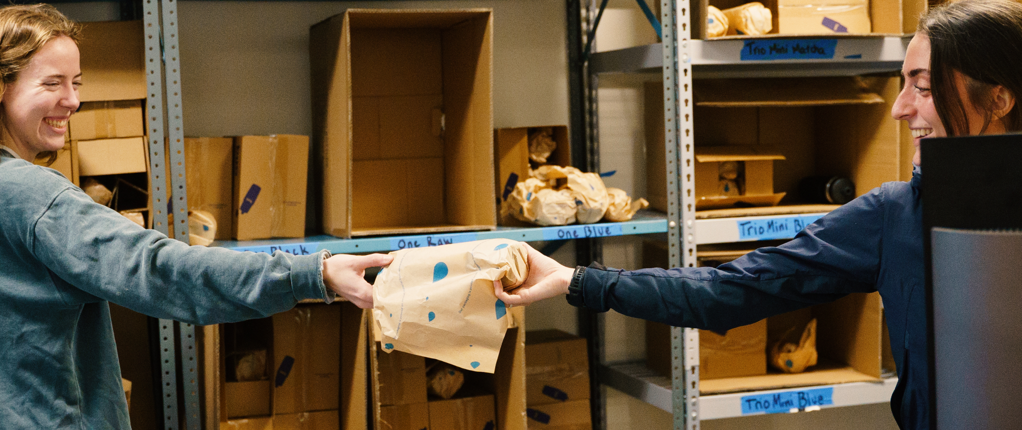 We never wanted to ship a box within a box just to keep up appearances. Instead, our outer box is crafted to feel as intentional as what’s inside. For online orders, this means our customers get the full brand experience from the moment they see the package on their doorstep with no poly-bag filters or pellets required. In every way, our packaging reflects our values–scrappy, conscious, designed with a purpose, and always, with a sense of fun (and often pun…feel free to roll your eyes now!)