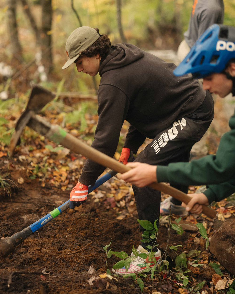 Pictured Above: 1. Adaptive athletes Greg Durso and Allie Bianchi. 2. Volunteer trail builders hard at work!